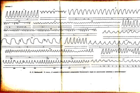 Picture 1. From the article of N. E. Vvedensky "About impact of electric irritation of vagus nerve upon respiratory motions in mammals" (1881).